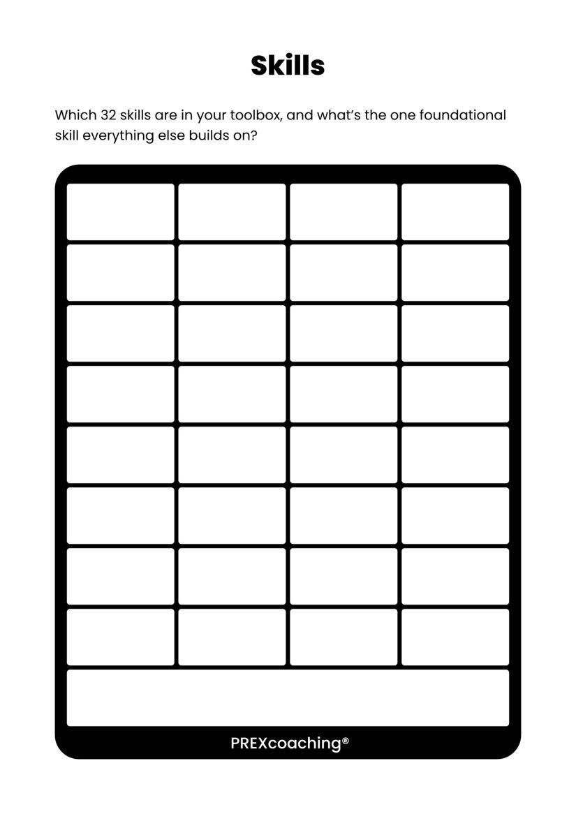 The classic “what skills are in your toolbox,” so many may find it useful, either personally as an introspection tool, or professionally as a coach, teacher, or trainer.
